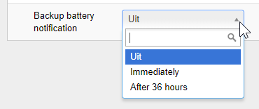 Wanneer een unit op zijn back-up batterij overgaat kunt u instellen dat u daar direct of na 36 uur een notificatie van wilt krijgen. U kunt tijdig onderzoeken waarom er geen externe spanning meer is.