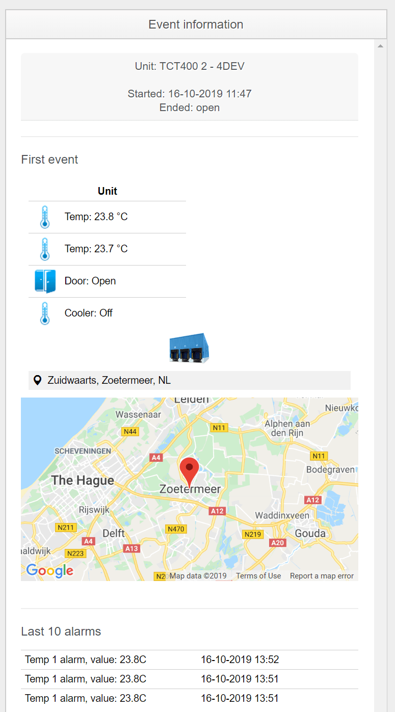 - U ziet nu in de tweede kolom alle alarmen van de unit in de gekozen periode