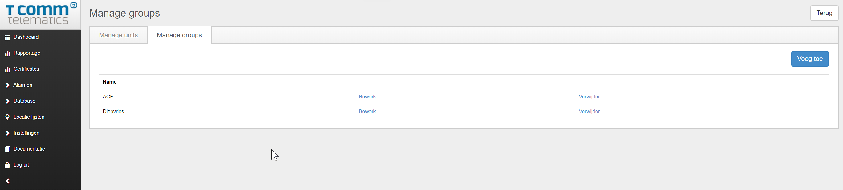 Op het tabblad ‘Manage units’ heb je direct overzicht van alle voertuigen en de groepen waarin ze zijn ingedeeld.