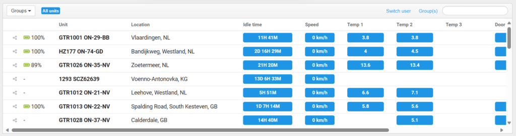 Op deze wijze kan je snel zien welke voertuigen bijvoorbeeld het langst stil staan, op een bepaalde locatie zijn of welke een lege back-up batterij gaan krijgen.