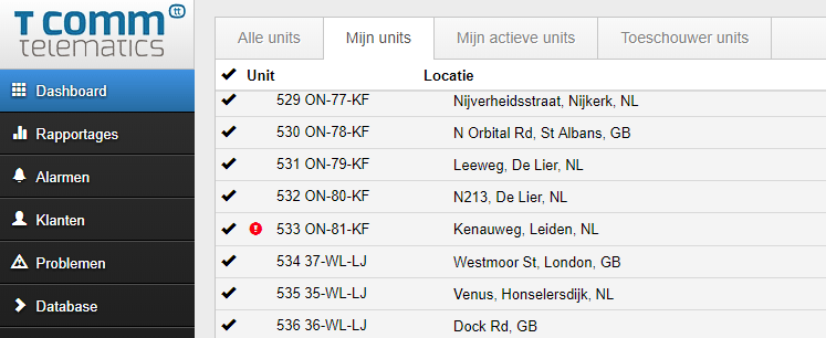 Doordat T Comm Telematics een softwarematige koppeling met het RDW heeft wordt eenmaal per dag de geregistreerde APK datum opgehaald. Deze zal alleen opgehaald kunnen worden wanneer er bij de unit een geldig en Nederlands kenteken geregistreerd staat.