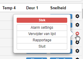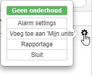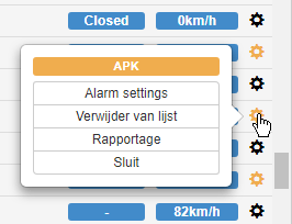 Op het Dashboard in de regel van een voertuig ziet u geheel aan de rechterkant een tandwiel. Achter dit tandwiel zit een menu verstopt met verschillende opties, deze zal zich tonen nadat er op het tandwiel geklikt is.