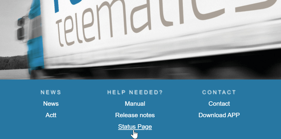 Via een link op de login pagina of ‘Documentatie’ in het menu van de Webportal kunt u naar de status pagina gaan. Op deze pagina worden meldingen geplaatst wanneer de status van ons platform wijzigt door bugs of onderhoud.