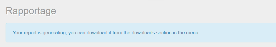 Wanneer een rapport in Excel of PDF bestand aangevraagd wordt zal deze beschikbaar zijn op een nieuwe pagina ‘Rapporten downloads’. Gebruikers worden op de hoogte gesteld door een notificatie bovenaan de pagina.