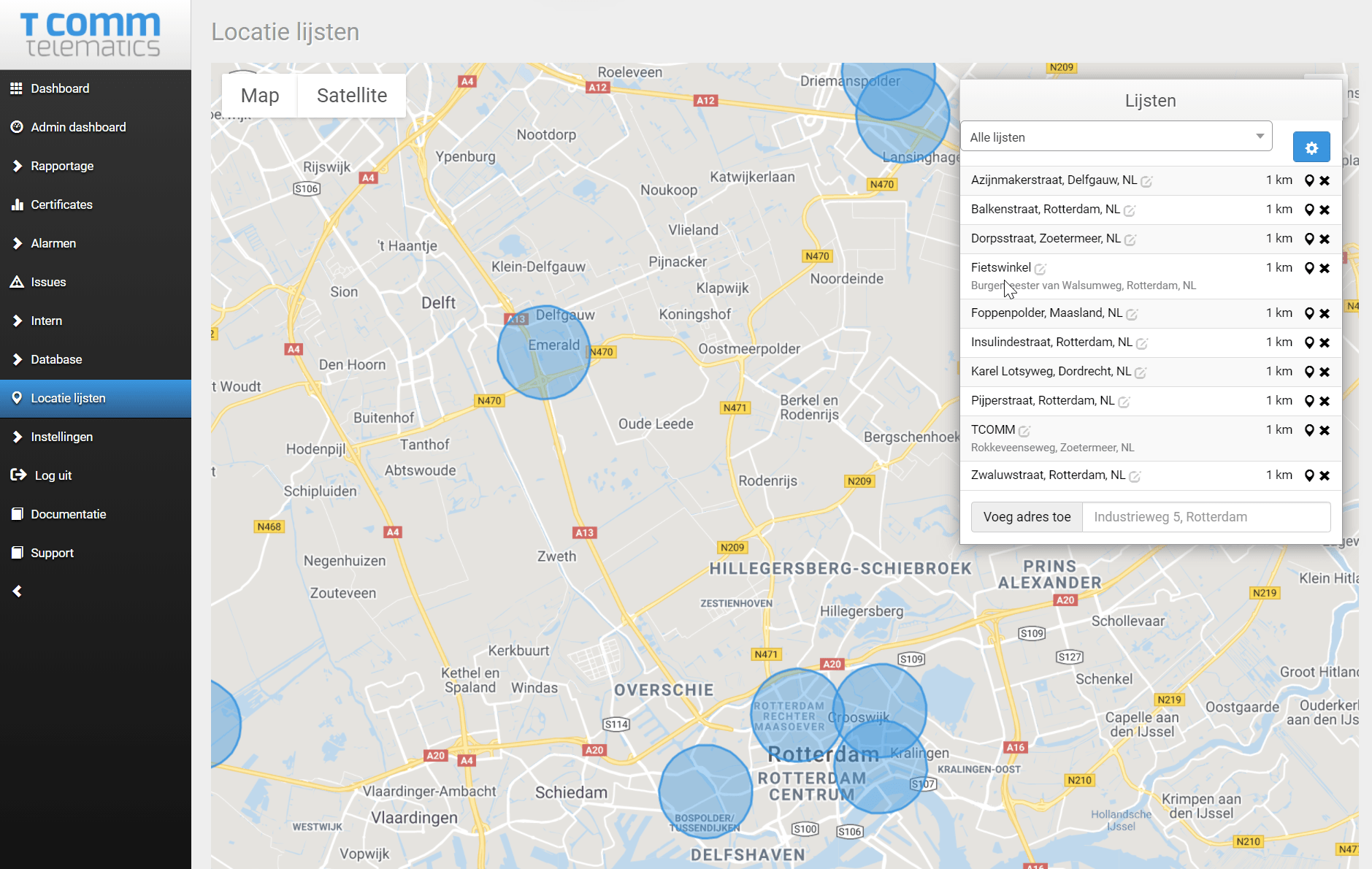 - Locatie lijsten worden automatisch gesorteerd op alfabet wat het opzoeken van een adres makkelijker maakt. Hierdoor kan je snel een adres opzoeken en de titel wijzigen of andere aanpassingen doen. Alarm instelling gebaseerd op locatie geeft je een melding als het voertuig gearriveerd is en in combinatie met een deursensor een notificatie als de deur op een ongewenste locatie open gaat.