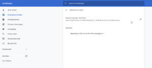 - Klik op de blauwe balk aan de rechterkant. Je zal zien dat automatisch aanvullen dan naar ‘uit’ verspringt. Nu worden gegevens niet meer bijgehouden en kunnen ze niet meer automatisch ingevuld worden.